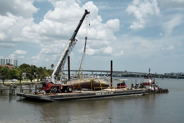 Pictured below load out by crane to awaiting trailer to haul the vessel to the dump for disposal.